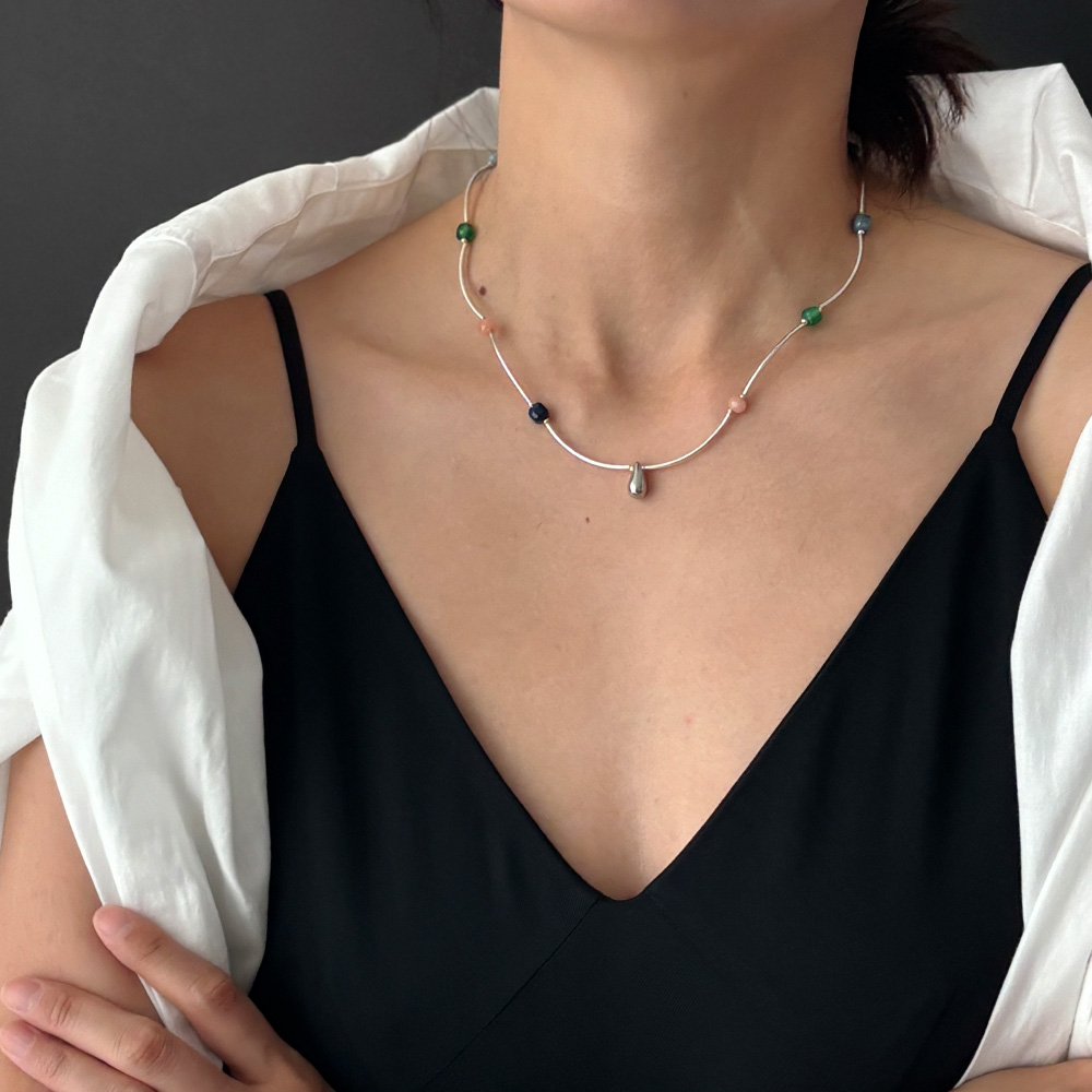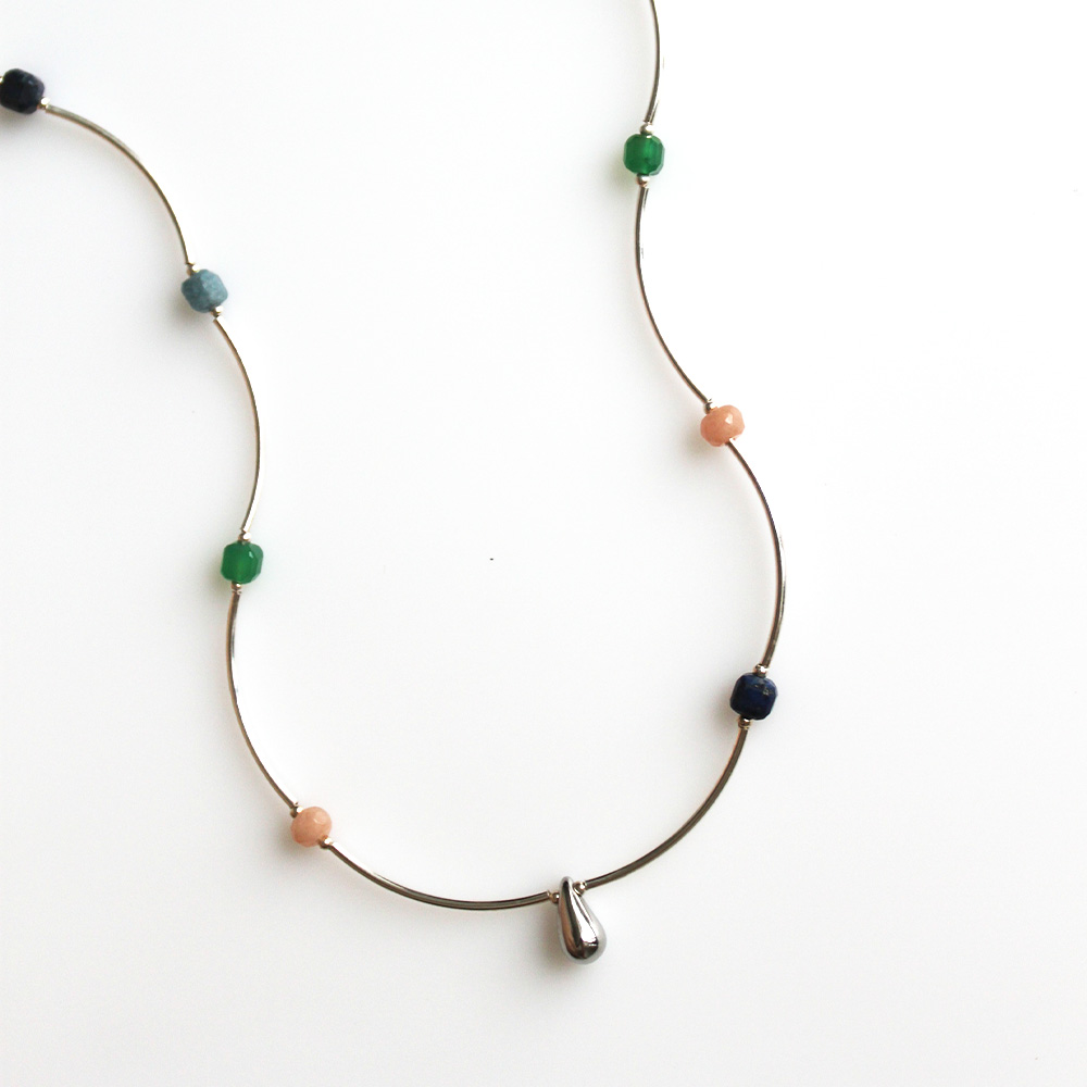 Color Stone Wave Necklace